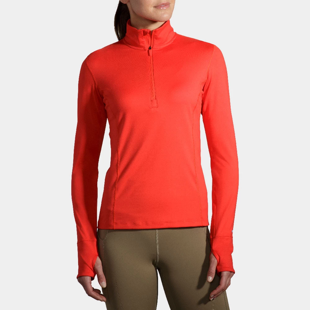 Warm, light, and softer than you might expect, the BrooksDash 1/2 Zip is the perfect layer for chilly runs. DriLayer® fabric wicks moisture to keep you cool and dry down to the final mile. Feel the softness from the proprietary blend of polyester and spandex to keep you comfortable. For runners who want a jacket that’s not too heavy or too light, the Brooks Dash 1/2 Zip hits the spot.