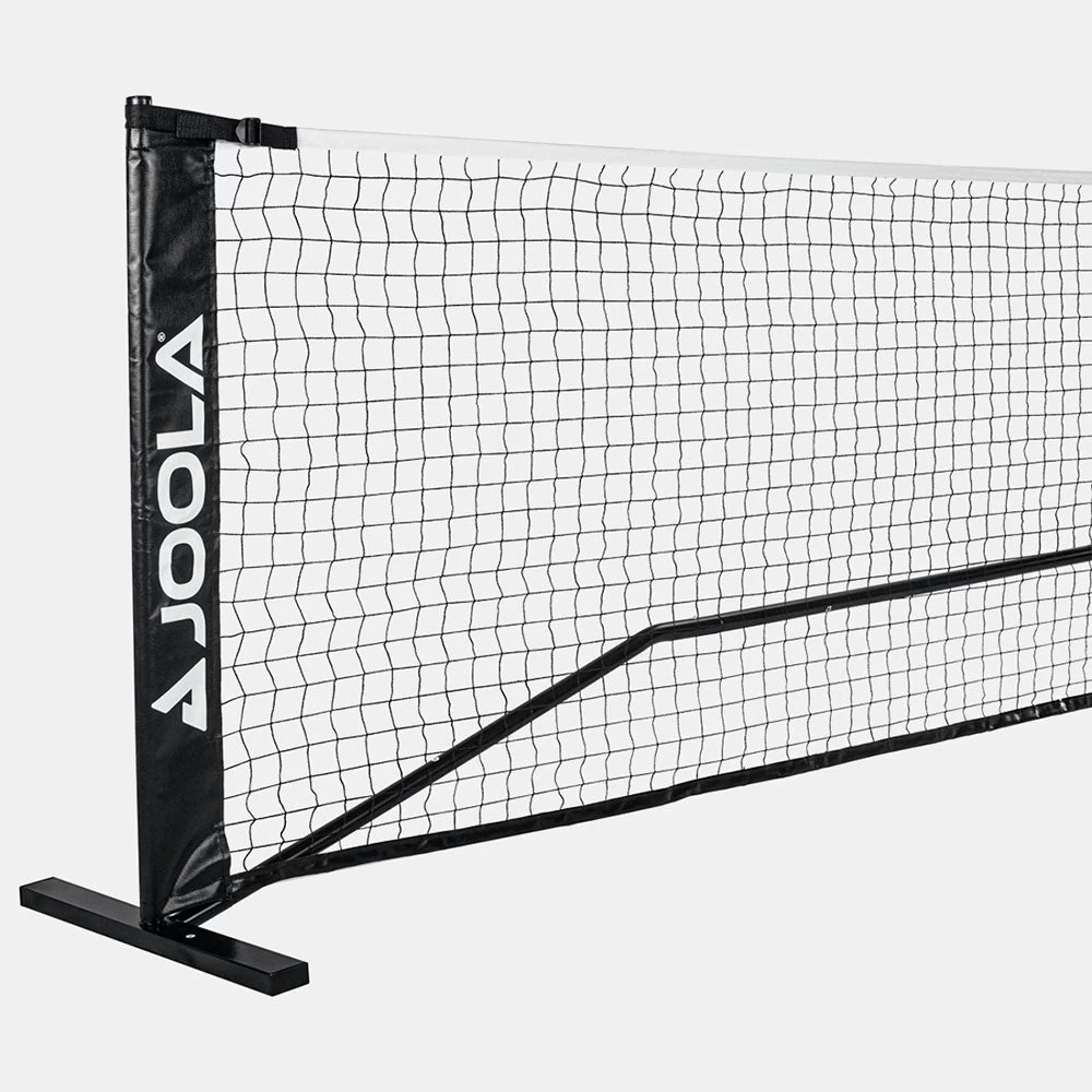 Play pickleball wherever you are with the JOOLA Essentials Net. This easy-to-transport system is regulation height (36″) and USAPA recommended length (22′), letting you quickly turn any hard surface into a pickleball court. Its durable steel frame and knotless PPVC netting withstand extended play, while the hollow steel tubing maintains rigidity. The wide, bent legs provide increased stability and wind resistance. At 20 lbs, this lightweight system is easy to transport in the zipped carrying bag. When the hunger for pickleball hits, the JOOLA Essentials Net lets you set up and start playing!