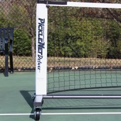 The Oncourt Offcourt PickleNet Deluxe will allow you to play a game of pickleball on any flat surface. This portable system is constructed with locking wheels that allow it to easily be rolled into place and to the side between games. Fast and easy assembly make this net a cinch to set up.