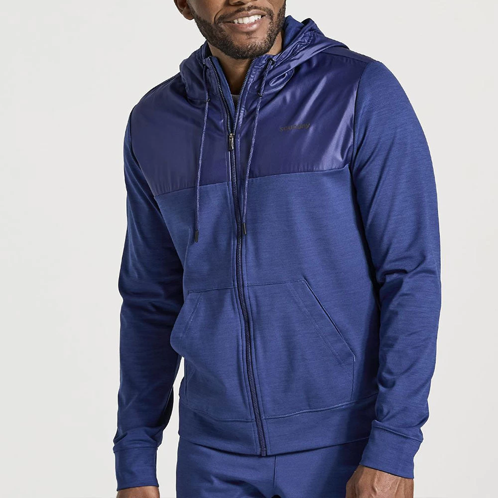 The Saucony Solstice Zip Hoody takes you where you want to go while keeping you warm along the way. Made specifically for winter workouts, this running hoody provides enough warmth to keep you moving comfortably without overheating. Recycled materials throughout the design leave a lighter footprint during your runs.