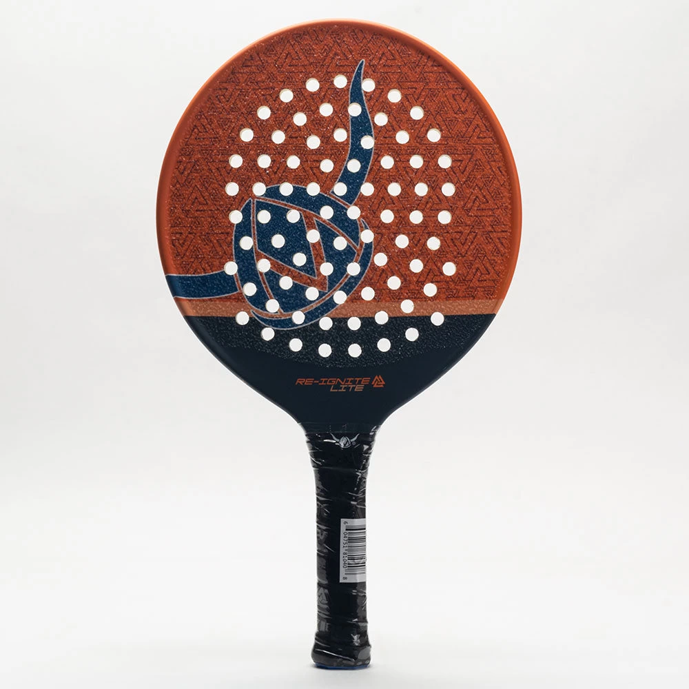 Set the courts on fire with the Viking Re-Ignite Lite! Lighter than the pro but heavier than the Prodigy, this platform tennis paddle features a Mid core density to allow more control. The Carbon Fiber Stability System offers the optimal blend of power and maneuverability, providing a whippy feel to enhance paddle speed. The grit surface texture provides comfort without sacrificing durability.