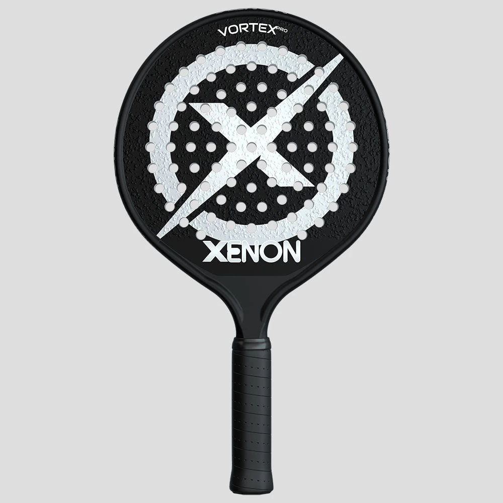 The Xenon Vortex Pro 370g platform tennis paddle lands in the higher end of “average” weight paddles on the market. Weighing in with an even head balance, this platform tennis paddle provides additional power from a heavier swing weight. Unlike many head-heavy paddles that feel bulky, this paddle feels just right for strong players who want power while maintaining playability.